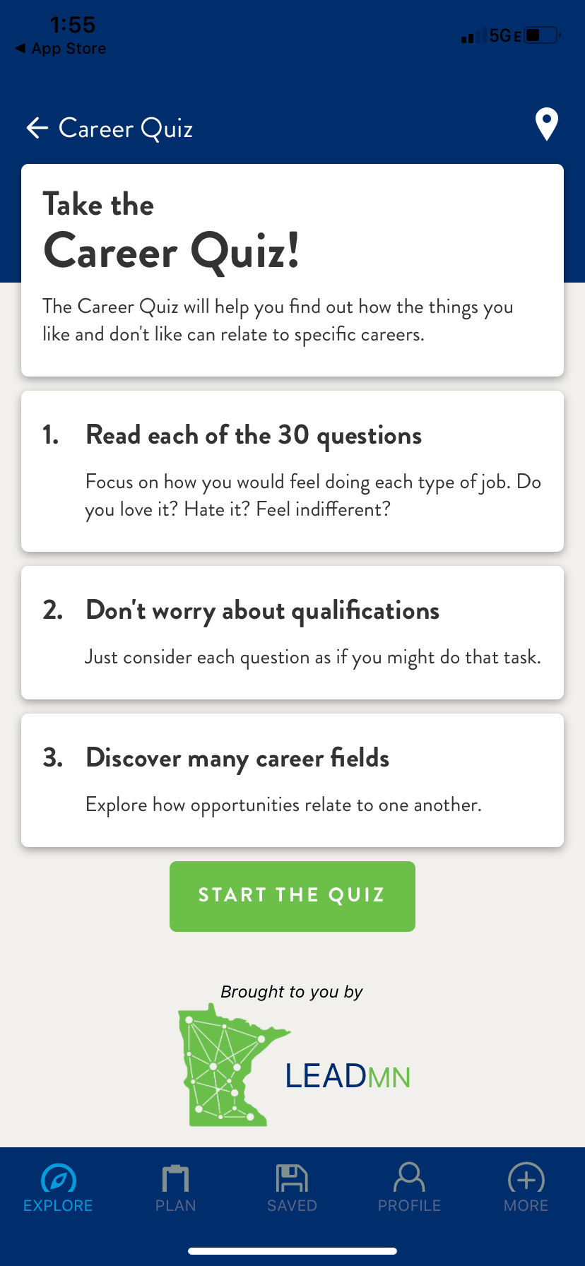 Careers.MN allows users to take control of their education! After completing a 30-question quiz, users can search through careers, colleges, and degree programs based on their career recommendations. Users can look through programs based on future salary, growth potential, and various other parameters. This allows users to find a job catered to their needs, or even decide on a major. Using location services you can also choose the path with the most growth in your Minnesota region.