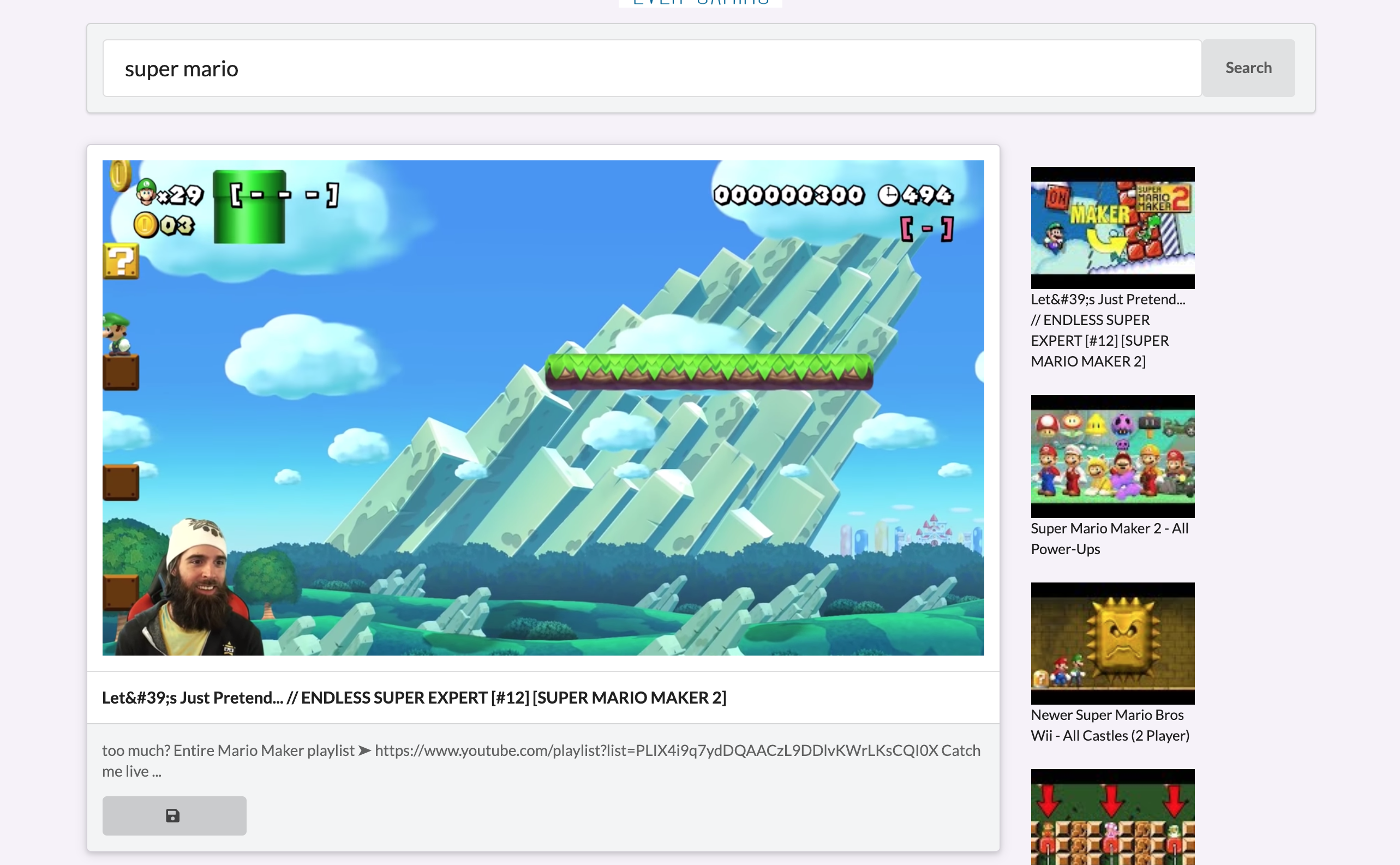 A gaming-themed video sharing web application. Users can search for gaming walkthroughs, tutorials, and streams utilizing Google's YouTube API; and build various playlists to share with their followers.